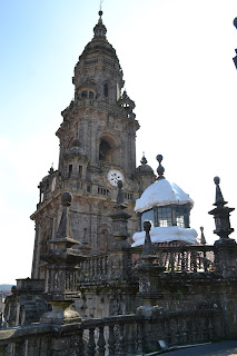 Tras dar una vuelta más al edificio catedralicio, se puede admirar la torre del reloj, también llamada la Berenguela y la plaza de la Platería, donde se sitúa la Fuente de los Caballos, el cabildo y también la tienda de la catedral donde están todos los libros, guías y documentales sobre el camino, y precisamente donde compré el de Kerkeling.